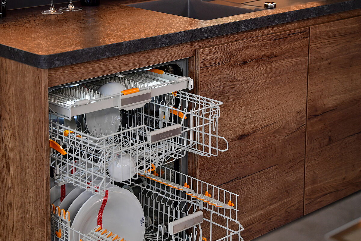Ob Herd, Kühlschrank, Arbeitsplatte oder Schränke – alles findet seinen Platz und ist optimal aufeinander abgestimmt. Durch praktische Einrichtungsdetails, schnelle Handgriffe und kurze Wege in Ihrer Küche wird das Kochen zum Genuss. Premium-Elektrogeräte von Miele sorgen dafür, dass die Zubereitung der Speisen und das Spülen geräuscharm und energieeffizient ablaufen.